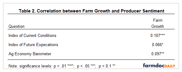 Langemeier, M. and J. Mintert. "Producer Sentiment and Farm Growth." farmdoc daily (13):82, Department of Agricultural and Consumer Economics, University of Illinois at Urbana-Champaign, May 5, 2023.