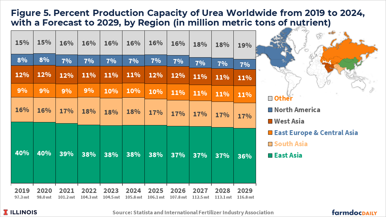 Figure 5 (Urea production capacity by region):